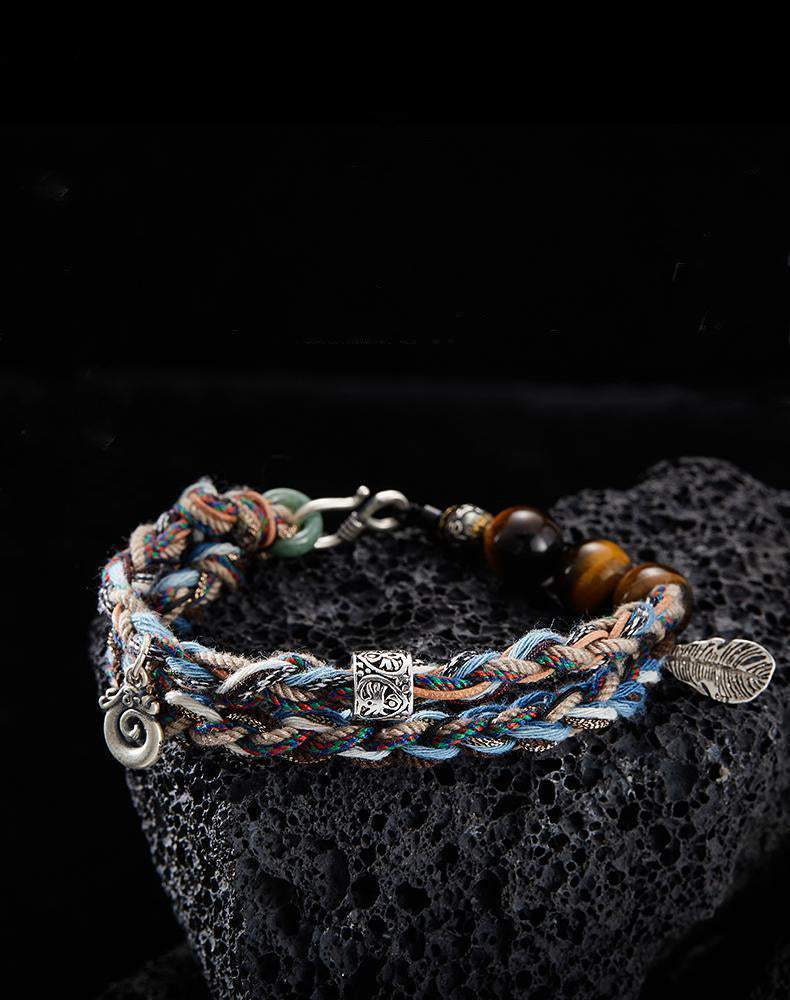 925 Silver Ice Crystal Charm with Braided Silk Cord Bracelet