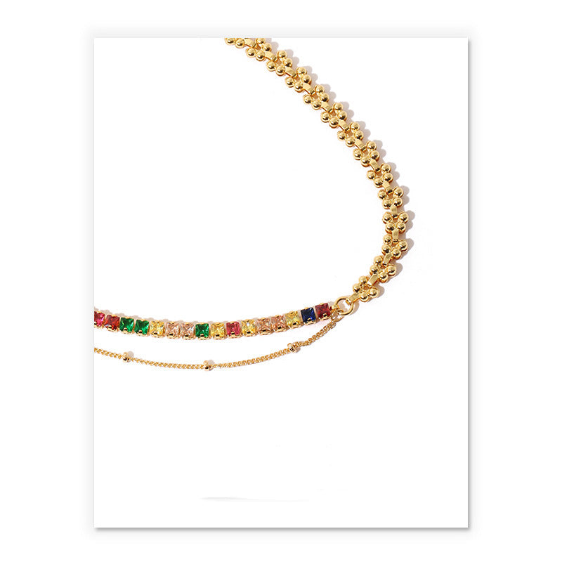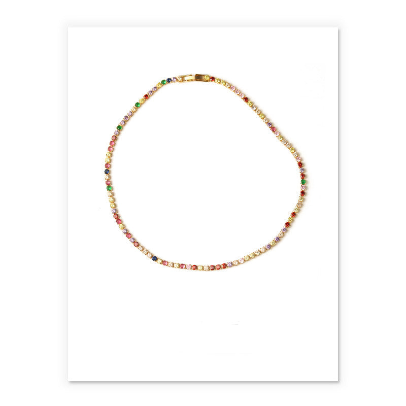 Rainbow Spectrum Design: Randomly arranged multicolor CZ stones (7 vibrant hues)